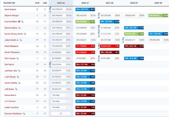 火箭队实际上是14+3名单,马修斯是训练营合同,因为火箭队的空间已经不足以签下一名底薪球员所以才一直没有申请伤病特例,目前火箭只剩下125万的空间,但在进入赛季后底薪合同球员的薪水会逐渐降低,所以火箭可以在赛季末时转正戴维森,届时他就可以代表火箭打季后赛。