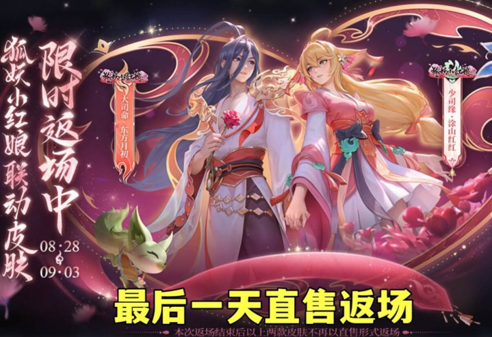 前段时间七夕节,王者荣耀返场了大司命和少司缘的七夕节主题皮肤。这两款皮肤的返场时间,如今已经只剩下最后一天了。