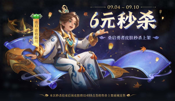这款皮肤在4号就会上线,截止到9月10号,这段时间皮肤的售价都只要60点券,过了10号之后,这款就会恢复到488点券的价格。